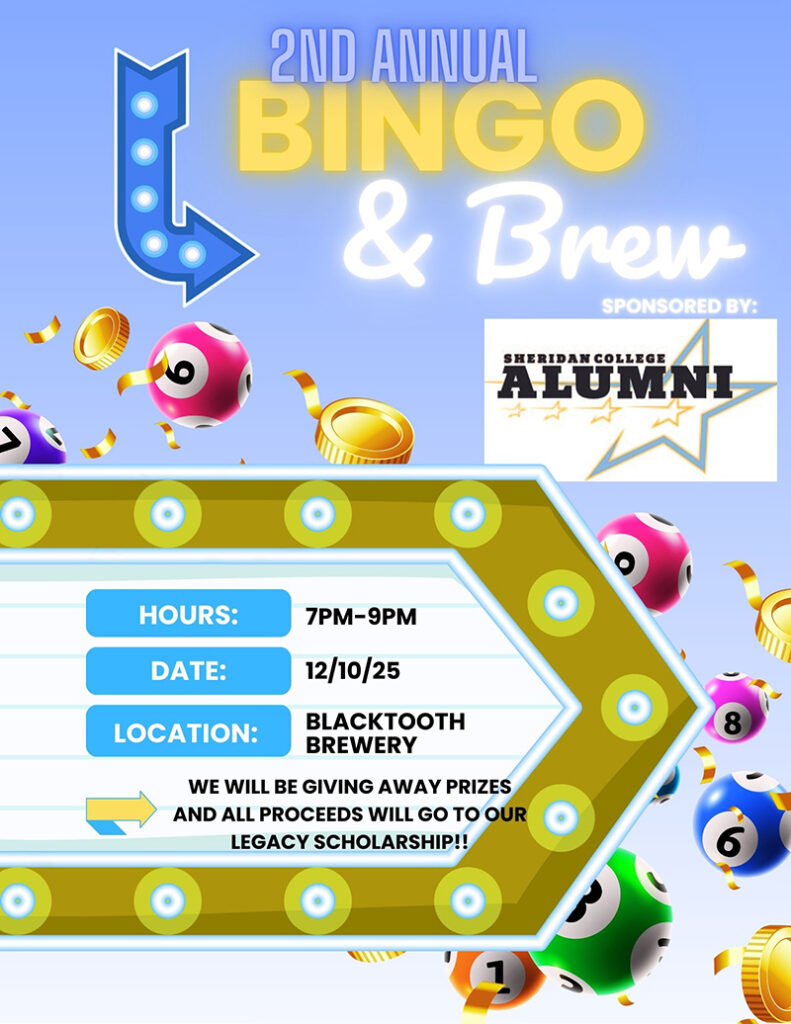 The Sheridan College Alumni Association would like to invite everybody to the 2nd Annual Bingo & Brew at Blacktooth Brewery on Wednesday, December 10th from 7-9pm. Everyone is welcome: you do not have to be a Sheridan College Alum in order to attend.